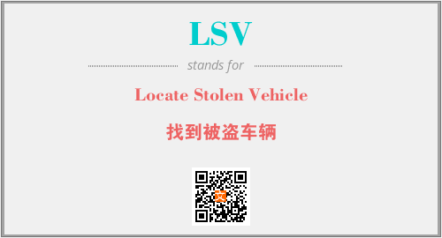 上述内容是“Locate Stolen Vehicle”作为“LSV”的缩写,解释为“找到被盗车辆”时的信息,以及英文缩略词LSV所代表的英文单词,其对应的中文拼音、详细解释以及在英文中的流行度和相关分类、应用领域及应用示例等。