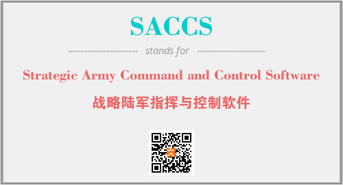 英文缩略词“SACCS”经常作为“Strategic Army Command and Control Software”的英文缩写来使用,中文表示:“战略陆军指挥与控制软件”。本文将详细介绍英文缩写词SACCS所代表英文单词,其对应的中文拼音、详细解释以及在英语中的流行度。此外,还有关于缩略词SACCS的分类、应用领域及相关应用示例等。