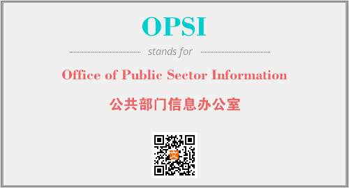 上述内容是“Office of Public Sector Information”作为“OPSI”的缩写,解释为“公共部门信息办公室”时的信息,以及英文缩略词OPSI所代表的英文单词,其对应的中文拼音、详细解释以及在英文中的流行度和相关分类、应用领域及应用示例等。