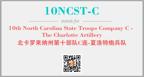 上述内容是“10th North Carolina State Troops Company C - The Charlotte Artillery”作为“10NCST-C”的缩写,解释为“北卡罗来纳州第十部队C连-夏洛特炮兵队”时的信息,以及英文缩略词10NCST-C所代表的英文单词,其对应的中文拼音、详细解释以及在英文中的流行度和相关分类、应用领域及应用示例等。