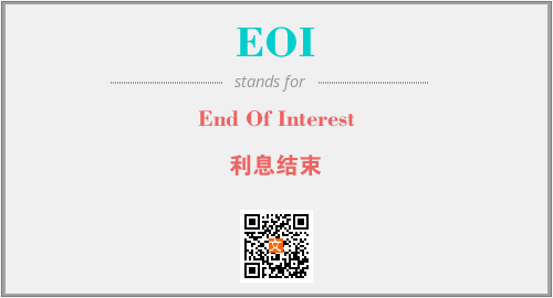 上述内容是“End Of Interest”作为“EOI”的缩写,解释为“利息结束”时的信息,以及英文缩略词EOI所代表的英文单词,其对应的中文拼音、详细解释以及在英文中的流行度和相关分类、应用领域及应用示例等。