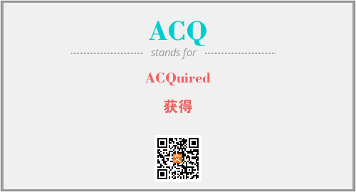英文缩略词“ACQ”经常作为“ACQuired”的英文缩写来使用,中文表示:“获得”。本文将详细介绍英文缩写词ACQ所代表英文单词,其对应的中文拼音、详细解释以及在英语中的流行度。此外,还有关于缩略词ACQ的分类、应用领域及相关应用示例等。