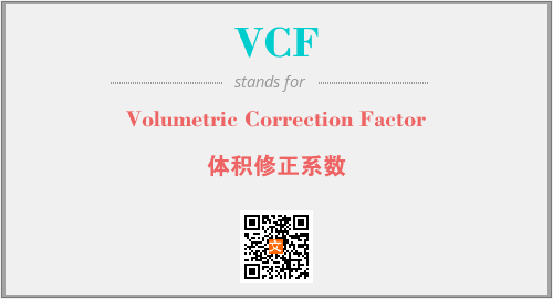 上述内容是“Volumetric Correction Factor”作为“VCF”的缩写,解释为“体积修正系数”时的信息,以及英文缩略词VCF所代表的英文单词,其对应的中文拼音、详细解释以及在英文中的流行度和相关分类、应用领域及应用示例等。
