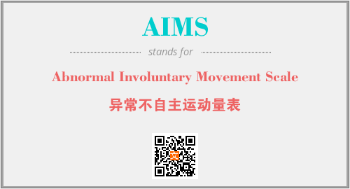 英文缩略词“AIMS”经常作为“Abnormal Involuntary Movement Scale”的英文缩写来使用,中文表示:“异常不自主运动量表”。本文将详细介绍英文缩写词AIMS所代表英文单词,其对应的中文拼音、详细解释以及在英语中的流行度。此外,还有关于缩略词AIMS的分类、应用领域及相关应用示例等。