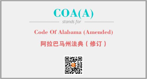 上述内容是“Code Of Alabama (Amended)”作为“COA(A)”的缩写,解释为“阿拉巴马州法典(修订)”时的信息,以及英文缩略词COA(A)所代表的英文单词,其对应的中文拼音、详细解释以及在英文中的流行度和相关分类、应用领域及应用示例等。