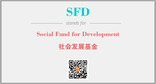 上述内容是“Social Fund for Development”作为“SFD”的缩写,解释为“社会发展基金”时的信息,以及英文缩略词SFD所代表的英文单词,其对应的中文拼音、详细解释以及在英文中的流行度和相关分类、应用领域及应用示例等。