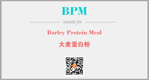 上述内容是“Barley Protein Meal”作为“BPM”的缩写,解释为“大麦蛋白粉”时的信息,以及英文缩略词BPM所代表的英文单词,其对应的中文拼音、详细解释以及在英文中的流行度和相关分类、应用领域及应用示例等。