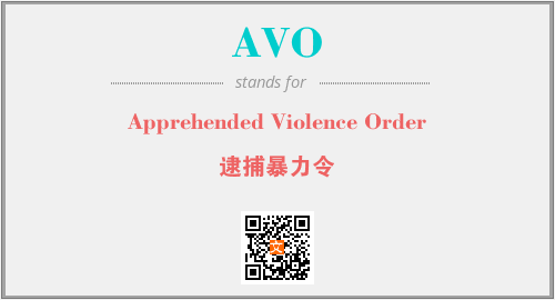 以上为Apprehended Violence Order英文缩略词AVO的中文解释,以及该英文缩写在英语的流行度、分类和应用领域方面的信息。
