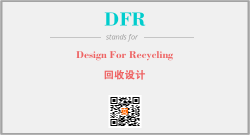 上述内容是“Design For Recycling”作为“DFR”的缩写,解释为“回收设计”时的信息,以及英文缩略词DFR所代表的英文单词,其对应的中文拼音、详细解释以及在英文中的流行度和相关分类、应用领域及应用示例等。