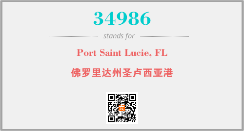 上述内容是“Port Saint Lucie, FL”作为“34986”的缩写,解释为“佛罗里达州圣卢西亚港”时的信息,以及英文缩略词34986所代表的英文单词,其对应的中文拼音、详细解释以及在英文中的流行度和相关分类、应用领域及应用示例等。