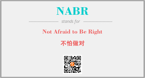 上述内容是“Not Afraid to Be Right”作为“NABR”的缩写,解释为“不怕做对”时的信息,以及英文缩略词NABR所代表的英文单词,其对应的中文拼音、详细解释以及在英文中的流行度和相关分类、应用领域及应用示例等。