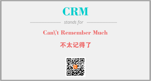 以上为Can\'t Remember Much英文缩略词CRM的中文解释,以及该英文缩写在英语的流行度、分类和应用领域方面的信息。