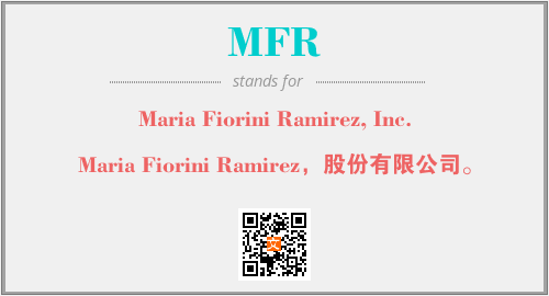 上述内容是“Maria Fiorini Ramirez, Inc.”作为“MFR”的缩写,解释为“Maria Fiorini Ramirez,股份有限公司。”时的信息,以及英文缩略词MFR所代表的英文单词,其对应的中文拼音、详细解释以及在英文中的流行度和相关分类、应用领域及应用示例等。