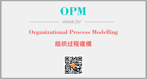 上述内容是“Organizational Process Modelling”作为“OPM”的缩写,解释为“组织过程建模”时的信息,以及英文缩略词OPM所代表的英文单词,其对应的中文拼音、详细解释以及在英文中的流行度和相关分类、应用领域及应用示例等。