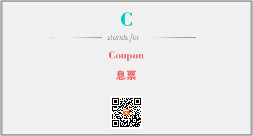 上述内容是“Coupon”作为“C”的缩写,解释为“息票”时的信息,以及英文缩略词C所代表的英文单词,其对应的中文拼音、详细解释以及在英文中的流行度和相关分类、应用领域及应用示例等。