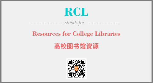 上述内容是“Resources for College Libraries”作为“RCL”的缩写,解释为“高校图书馆资源”时的信息,以及英文缩略词RCL所代表的英文单词,其对应的中文拼音、详细解释以及在英文中的流行度和相关分类、应用领域及应用示例等。