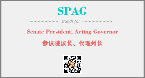 上述内容是“Senate President, Acting Governor”作为“SPAG”的缩写,解释为“参议院议长、代理州长”时的信息,以及英文缩略词SPAG所代表的英文单词,其对应的中文拼音、详细解释以及在英文中的流行度和相关分类、应用领域及应用示例等。