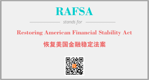 以上为Restoring American Financial Stability Act英文缩略词RAFSA的中文解释,以及该英文缩写在英语的流行度、分类和应用领域方面的信息。