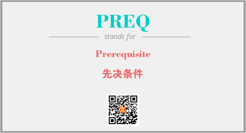 英文缩略词“PREQ”经常作为“Prerequisite”的英文缩写来使用,中文表示:“先决条件”。本文将详细介绍英文缩写词PREQ所代表英文单词,其对应的中文拼音、详细解释以及在英语中的流行度。此外,还有关于缩略词PREQ的分类、应用领域及相关应用示例等。