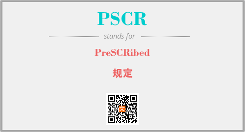英文缩略词“PSCR”经常作为“PreSCRibed”的英文缩写来使用,中文表示:“规定”。本文将详细介绍英文缩写词PSCR所代表英文单词,其对应的中文拼音、详细解释以及在英语中的流行度。此外,还有关于缩略词PSCR的分类、应用领域及相关应用示例等。
