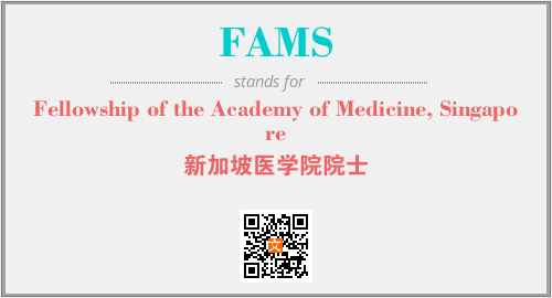 上述内容是“Fellowship of the Academy of Medicine, Singapore”作为“FAMS”的缩写,解释为“新加坡医学院院士”时的信息,以及英文缩略词FAMS所代表的英文单词,其对应的中文拼音、详细解释以及在英文中的流行度和相关分类、应用领域及应用示例等。