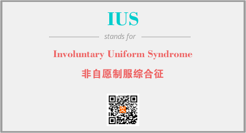 英文缩略词“IUS”经常作为“Involuntary Uniform Syndrome”的英文缩写来使用,中文表示:“非自愿制服综合征”。本文将详细介绍英文缩写词IUS所代表英文单词,其对应的中文拼音、详细解释以及在英语中的流行度。此外,还有关于缩略词IUS的分类、应用领域及相关应用示例等。