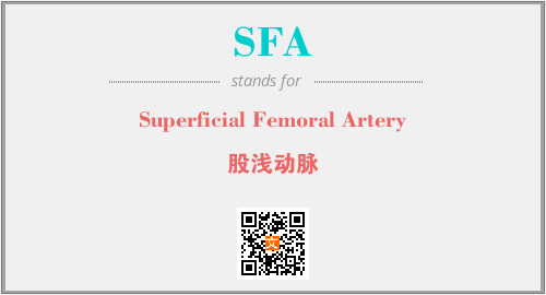 上述内容是“Superficial Femoral Artery”作为“SFA”的缩写,解释为“股浅动脉”时的信息,以及英文缩略词SFA所代表的英文单词,其对应的中文拼音、详细解释以及在英文中的流行度和相关分类、应用领域及应用示例等。