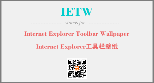 上述内容是“Internet Explorer Toolbar Wallpaper”作为“IETW”的缩写,解释为“Internet Explorer工具栏壁纸”时的信息,以及英文缩略词IETW所代表的英文单词,其对应的中文拼音、详细解释以及在英文中的流行度和相关分类、应用领域及应用示例等。