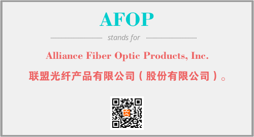 上述内容是“Alliance Fiber Optic Products, Inc.”作为“AFOP”的缩写,解释为“联盟光纤产品有限公司(股份有限公司)。”时的信息,以及英文缩略词AFOP所代表的英文单词,其对应的中文拼音、详细解释以及在英文中的流行度和相关分类、应用领域及应用示例等。