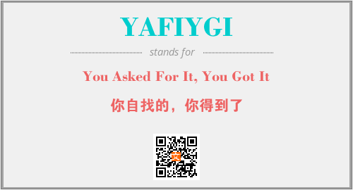 以上为You Asked For It, You Got It英文缩略词YAFIYGI的中文解释,以及该英文缩写在英语的流行度、分类和应用领域方面的信息。