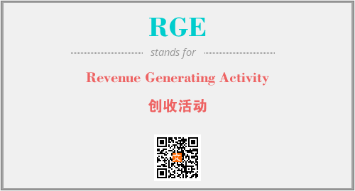 上述内容是“Revenue Generating Activity”作为“RGE”的缩写,解释为“创收活动”时的信息,以及英文缩略词RGE所代表的英文单词,其对应的中文拼音、详细解释以及在英文中的流行度和相关分类、应用领域及应用示例等。