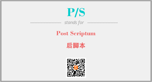 以上为Post Scriptum英文缩略词P/S的中文解释,以及该英文缩写在英语的流行度、分类和应用领域方面的信息。