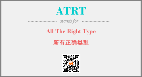 上述内容是“All The Right Type”作为“ATRT”的缩写,解释为“所有正确类型”时的信息,以及英文缩略词ATRT所代表的英文单词,其对应的中文拼音、详细解释以及在英文中的流行度和相关分类、应用领域及应用示例等。