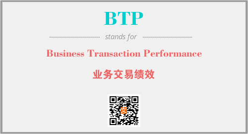 英文缩略词“BTP”经常作为“Business Transaction Performance”的英文缩写来使用,中文表示:“业务交易绩效”。本文将详细介绍英文缩写词BTP所代表英文单词,其对应的中文拼音、详细解释以及在英语中的流行度。此外,还有关于缩略词BTP的分类、应用领域及相关应用示例等。