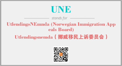 上述内容是“UtlendingsNEmnda (Norwegian Immigration Appeals Board)”作为“UNE”的缩写,解释为“Utlendingsnemda(挪威移民上诉委员会)”时的信息,以及英文缩略词UNE所代表的英文单词,其对应的中文拼音、详细解释以及在英文中的流行度和相关分类、应用领域及应用示例等。