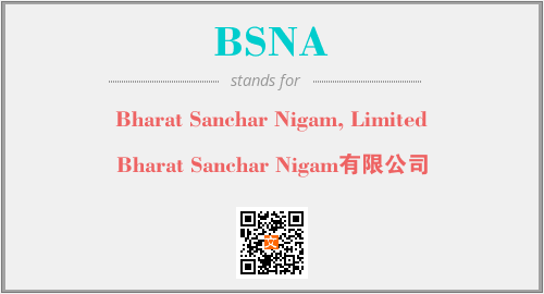 上述内容是“Bharat Sanchar Nigam, Limited”作为“BSNA”的缩写,解释为“Bharat Sanchar Nigam有限公司”时的信息,以及英文缩略词BSNA所代表的英文单词,其对应的中文拼音、详细解释以及在英文中的流行度和相关分类、应用领域及应用示例等。