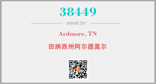 上述内容是“Ardmore, TN”作为“38449”的缩写,解释为“田纳西州阿尔德莫尔”时的信息,以及英文缩略词38449所代表的英文单词,其对应的中文拼音、详细解释以及在英文中的流行度和相关分类、应用领域及应用示例等。