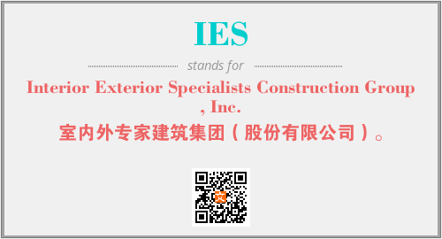 上述内容是“Interior Exterior Specialists Construction Group, Inc.”作为“IES”的缩写,解释为“室内外专家建筑集团(股份有限公司)。”时的信息,以及英文缩略词IES所代表的英文单词,其对应的中文拼音、详细解释以及在英文中的流行度和相关分类、应用领域及应用示例等。
