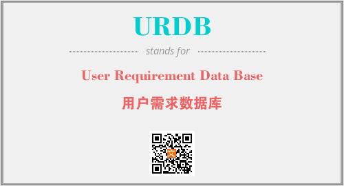 英文缩略词“URDB”经常作为“User Requirement Data Base”的英文缩写来使用,中文表示:“用户需求数据库”。本文将详细介绍英文缩写词URDB所代表英文单词,其对应的中文拼音、详细解释以及在英语中的流行度。此外,还有关于缩略词URDB的分类、应用领域及相关应用示例等。