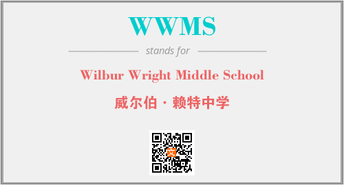 上述内容是“Wilbur Wright Middle School”作为“WWMS”的缩写,解释为“威尔伯·赖特中学”时的信息,以及英文缩略词WWMS所代表的英文单词,其对应的中文拼音、详细解释以及在英文中的流行度和相关分类、应用领域及应用示例等。