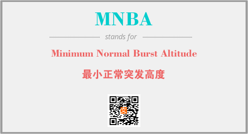 上述内容是“Minimum Normal Burst Altitude”作为“MNBA”的缩写,解释为“最小正常突发高度”时的信息,以及英文缩略词MNBA所代表的英文单词,其对应的中文拼音、详细解释以及在英文中的流行度和相关分类、应用领域及应用示例等。