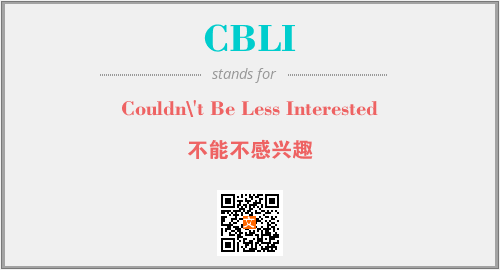 以上为Couldn\'t Be Less Interested英文缩略词CBLI的中文解释,以及该英文缩写在英语的流行度、分类和应用领域方面的信息。