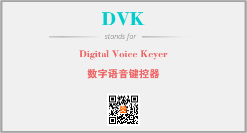 英文缩略词“DVK”经常作为“Digital Voice Keyer”的英文缩写来使用,中文表示:“数字语音键控器”。本文将详细介绍英文缩写词DVK所代表英文单词,其对应的中文拼音、详细解释以及在英语中的流行度。此外,还有关于缩略词DVK的分类、应用领域及相关应用示例等。