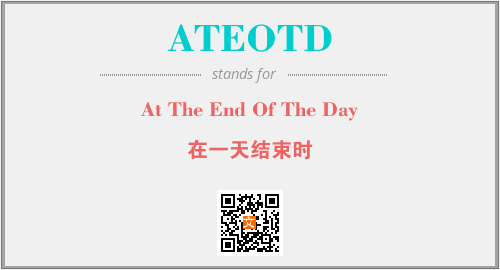 英文缩略词“ATEOTD”经常作为“At The End Of The Day”的英文缩写来使用,中文表示:“在一天结束时”。本文将详细介绍英文缩写词ATEOTD所代表英文单词,其对应的中文拼音、详细解释以及在英语中的流行度。此外,还有关于缩略词ATEOTD的分类、应用领域及相关应用示例等。