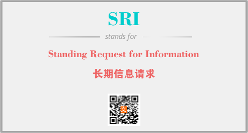英文缩略词“SRI”经常作为“Standing Request for Information”的英文缩写来使用,中文表示:“长期信息请求”。本文将详细介绍英文缩写词SRI所代表英文单词,其对应的中文拼音、详细解释以及在英语中的流行度。此外,还有关于缩略词SRI的分类、应用领域及相关应用示例等。