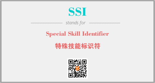 英文缩略词“SSI”经常作为“Special Skill Identifier”的英文缩写来使用,中文表示:“特殊技能标识符”。本文将详细介绍英文缩写词SSI所代表英文单词,其对应的中文拼音、详细解释以及在英语中的流行度。此外,还有关于缩略词SSI的分类、应用领域及相关应用示例等。