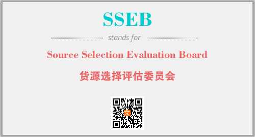 上述内容是“Source Selection Evaluation Board”作为“SSEB”的缩写,解释为“货源选择评估委员会”时的信息,以及英文缩略词SSEB所代表的英文单词,其对应的中文拼音、详细解释以及在英文中的流行度和相关分类、应用领域及应用示例等。