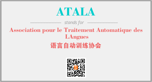 英文缩略词“ATALA”经常作为“Association pour le Traitement Automatique des LAngues”的英文缩写来使用,中文表示:“语言自动训练协会”。本文将详细介绍英文缩写词ATALA所代表英文单词,其对应的中文拼音、详细解释以及在英语中的流行度。此外,还有关于缩略词ATALA的分类、应用领域及相关应用示例等。