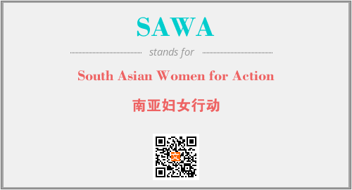 上述内容是“South Asian Women for Action”作为“SAWA”的缩写,解释为“南亚妇女行动”时的信息,以及英文缩略词SAWA所代表的英文单词,其对应的中文拼音、详细解释以及在英文中的流行度和相关分类、应用领域及应用示例等。