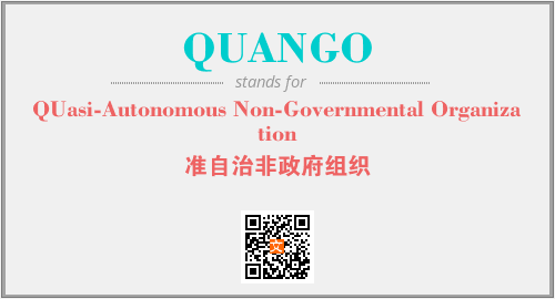 上述内容是“QUasi-Autonomous Non-Governmental Organization”作为“QUANGO”的缩写,解释为“准自治非政府组织”时的信息,以及英文缩略词QUANGO所代表的英文单词,其对应的中文拼音、详细解释以及在英文中的流行度和相关分类、应用领域及应用示例等。